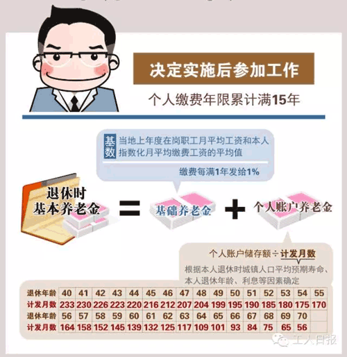 退休后按月發(fā)給基本養(yǎng)老金=基礎養(yǎng)老金+個人賬戶養(yǎng)老金。