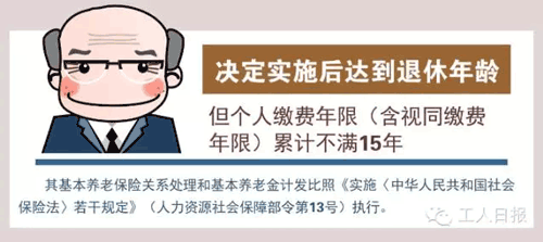 決定實施后達到退休年齡但個人繳費年限累計不滿15年的人員,其基本養(yǎng)老保險關系處理和基本養(yǎng)老金計發(fā)比照《實施〈中華人民共和國社會保險法〉若干規(guī)定》(人力資源社會保障部令第13號)執(zhí)行。